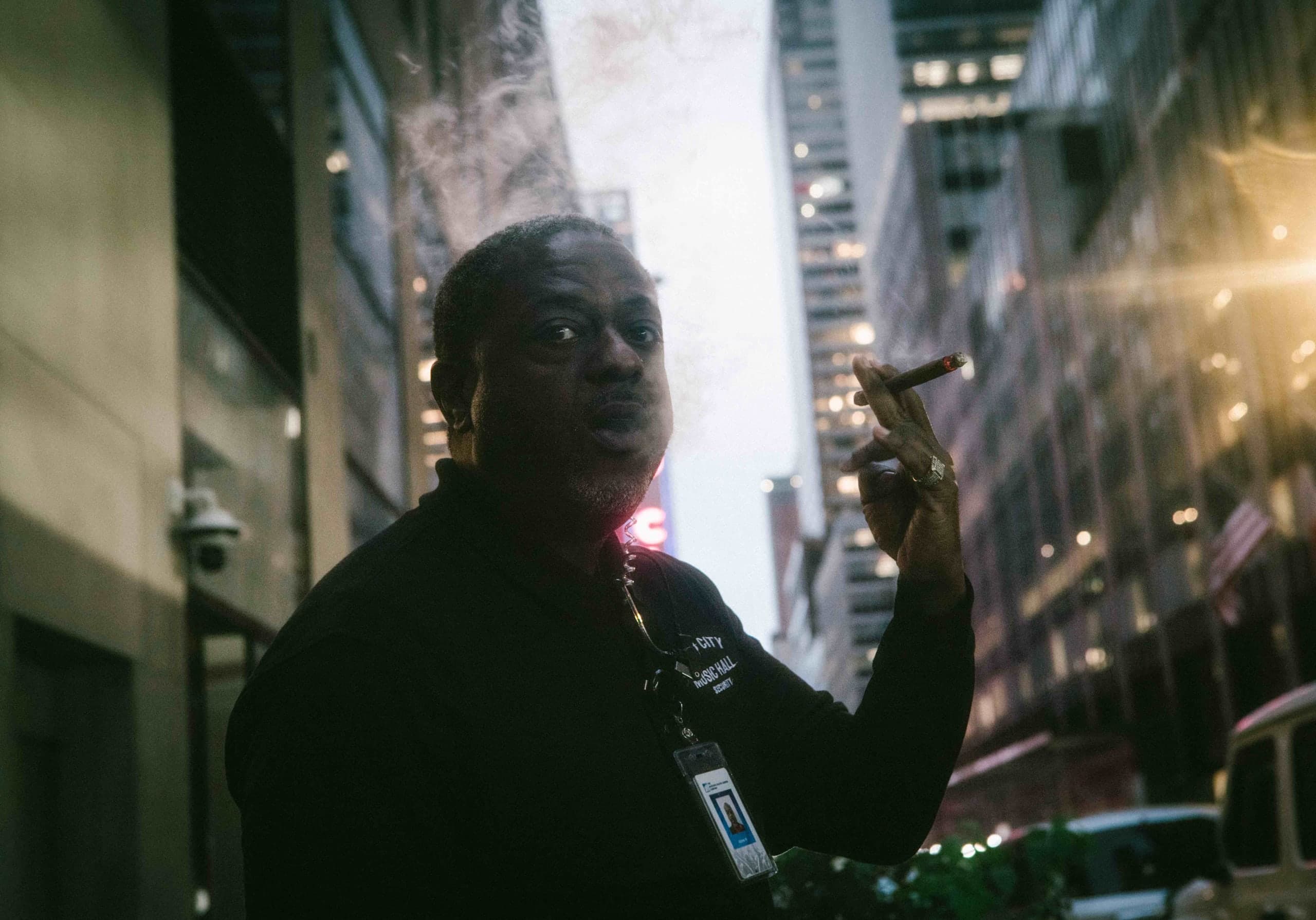 Peut-être la photo la plus emblématique et charismatique de l’exposition Working Class. “Il m’a vu arriver de loin avec l’appareil photo, et il m’a fait signe de venir : “Take a picture” et il a craché un gros nuage de cigare !”, sourit Guillaume Mougin en repensant à cet agent d’une grande station de radio new-yorkaise.