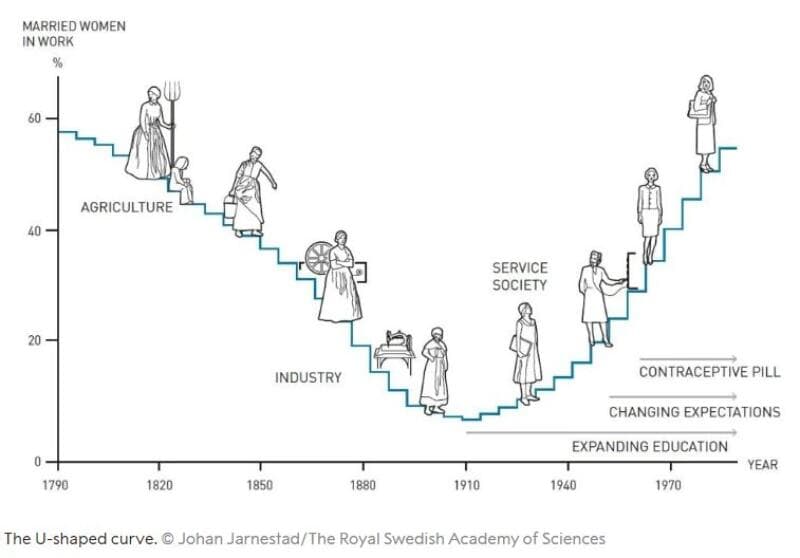 Mais Claudia est Américaine, donc son objet d’étude est resté focus sur les US. Elle a analysé plus de 200 ans de data, de chiffres, etc pour tenter d’expliquer (mais pas justifier) les raisons des inégalités salariales. Et contrairement à ce que beaucoup peuvent croire, ce n’est pas parce que les femmes se sont mises à travailler plus tard.