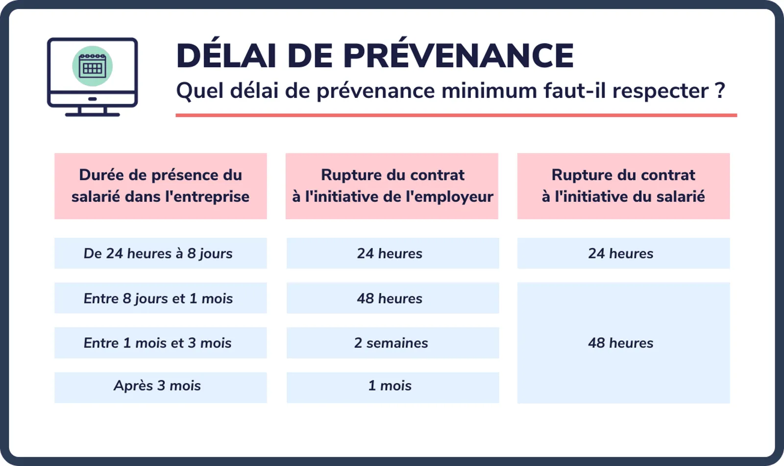 Votre employeur n’est pas convaincu. Il doit vous prévenir à l’avance selon la durée du contrat. C’est ce que l’on appelle le délai de prévenance.