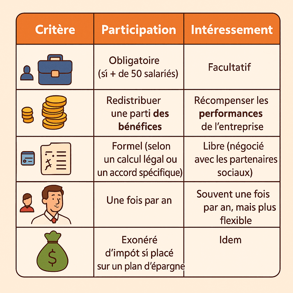 💡 Si vous ne deviez retenir qu’une chose, ce serait ça : la participation est obligatoire dès que l’entreprise réalise des bénéfices (+50 salariés). Alors que l’intéressement est facultatif.
