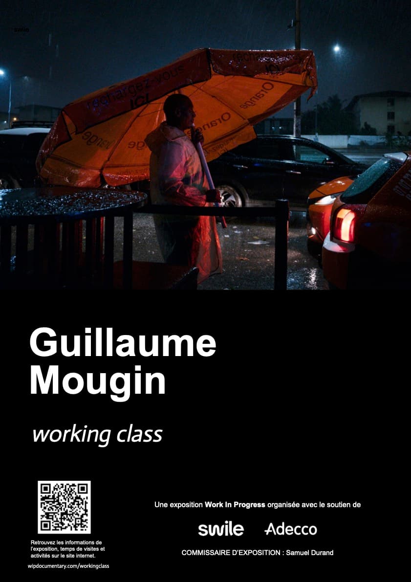 Le choix de l’affiche de l’exposition est peut-être le plus parlant : un porte-parapluie à Abidjan. “Un métier improbable”, sourit le photographe. Pour Samuel, “il représente bien le terme de Working Class. Tu te poses plein de questions : est-ce que c’est vraiment un métier ? Est-ce que les gens ne peuvent pas sortir eux-mêmes un parapluie pour se mettre à l’abri ? Est-ce qu’on a vraiment besoin d’un mec pour faire ça ? Il y a aussi le côté serviciel qu’on retrouve beaucoup dans toute l’exposition”.