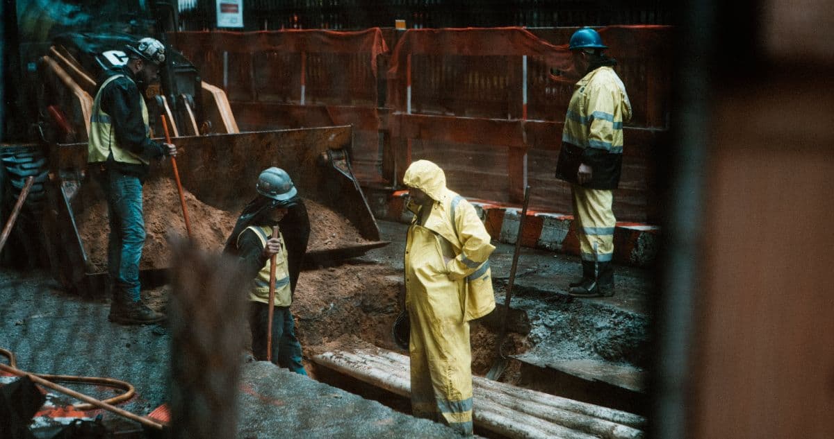 Imaginez : on est en plein quartier d’affaires, dans le centre de Manhattan, et là, quatre gars en gilet jaune plein de boue en train de creuser dans le sol, sous des trombes d’eau. "Ils font tache" : voilà ce que pensent probablement les New-Yorkais qui passent à côté, “des mecs en Uber, des mecs en costume, des mecs en trenchs” se souvient Guillaume Mougin, le photographe de l’expo.