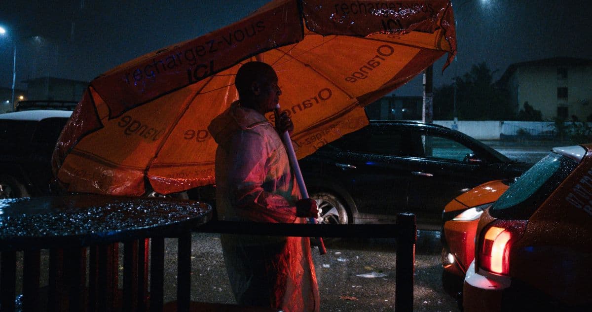 Cette photo, ce n’est pas n’importe quelle photo : c’est l’affiche de l’exposition. Une photo qui vient saisir l’essence-même de l’installation, en capturant l’image d’un travailleur dont le job questionne : à Cocody, en plein dans ce quartier d’Abidjan qui bouge pas mal, on découvre cet homme qui tient un parapluie XXL, objet surréaliste qui lui donne des airs de grand papillon rougeoyant. “Métier improbable, métier hallucinant aujourd’hui, en 2023” s’étonne Guillaume Mougin, photographe de l’expo.