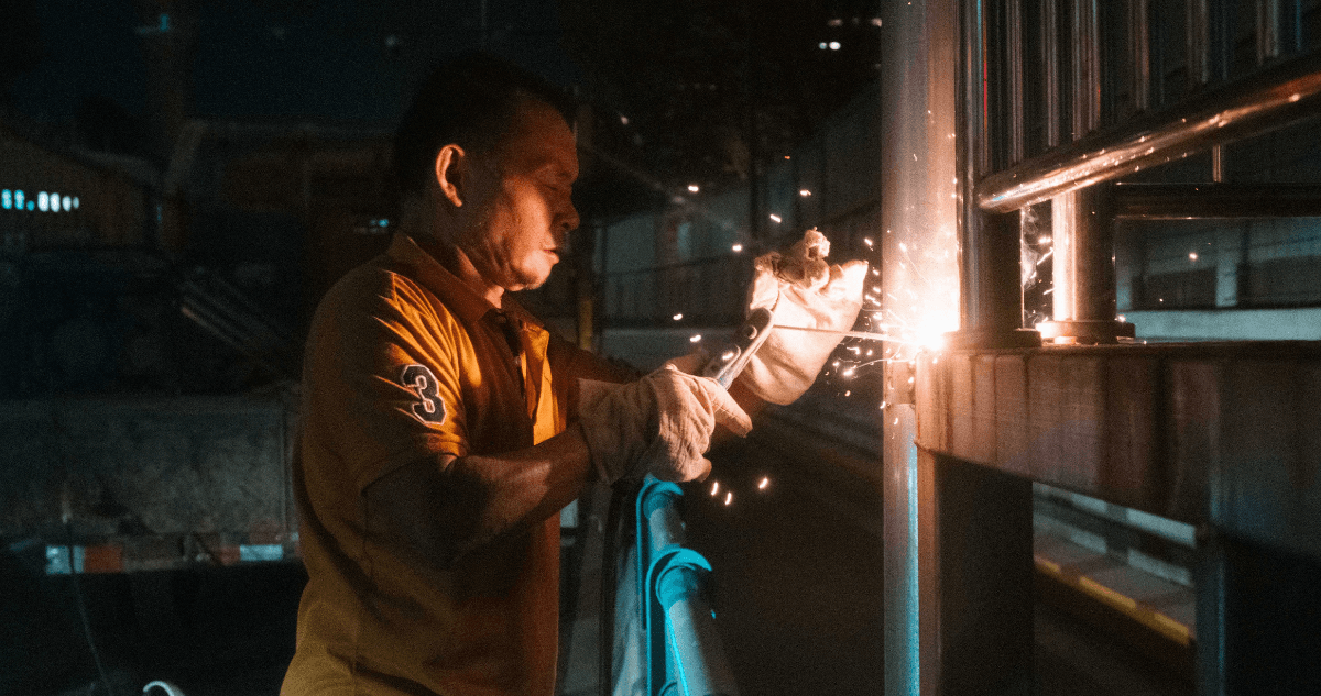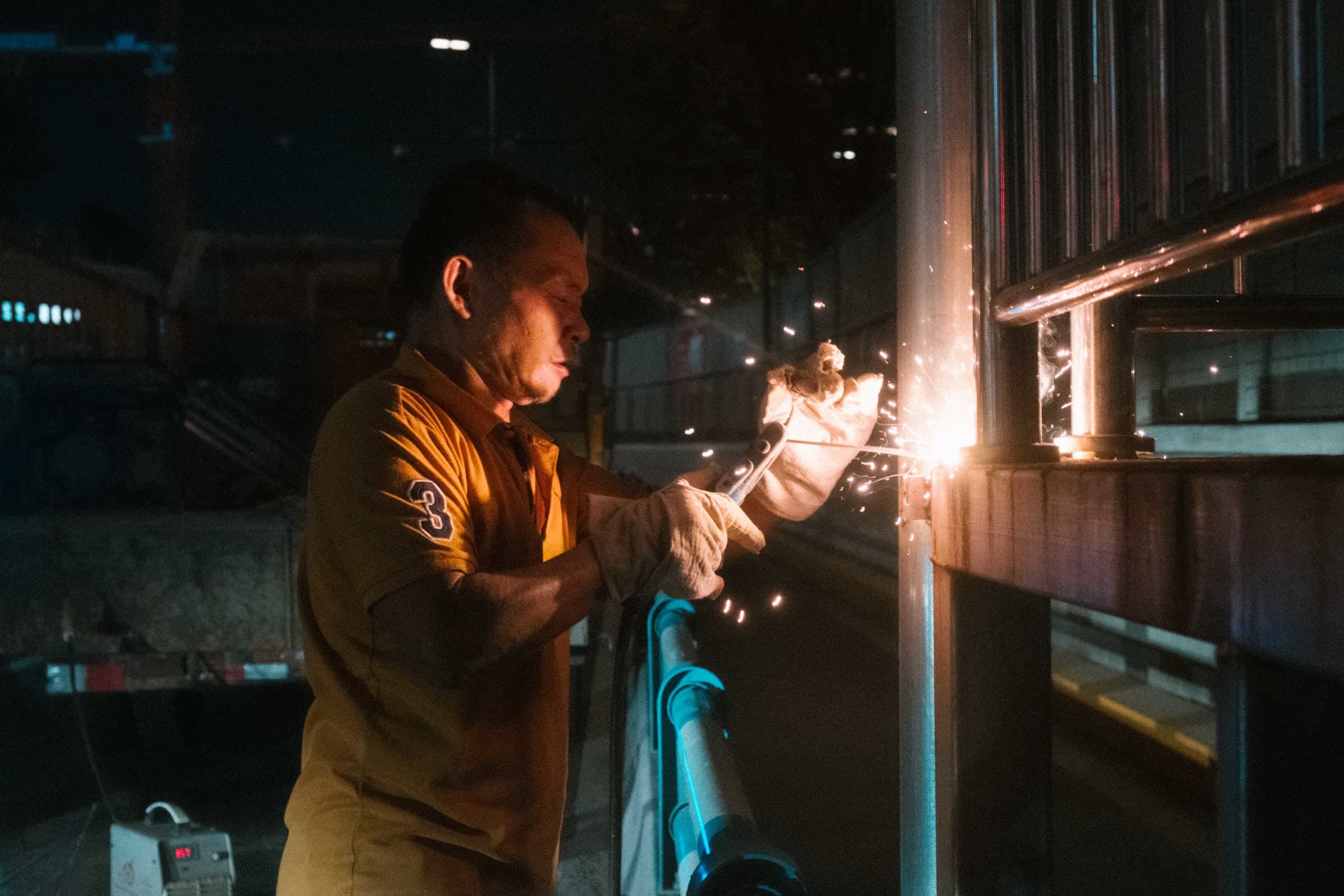 En vous arrêtant sur cette photo, vous avez surement été choqué par la même chose que le photographe : “il est en train de souder… sans lunettes de protection”. “Le mec fermait juste les yeux. Il prépare son coup, il appuie, il ferme les yeux une demi-seconde, il vérifie… et il recommence. Il était 2h du matin”, se souvient Guillaume Mougin.